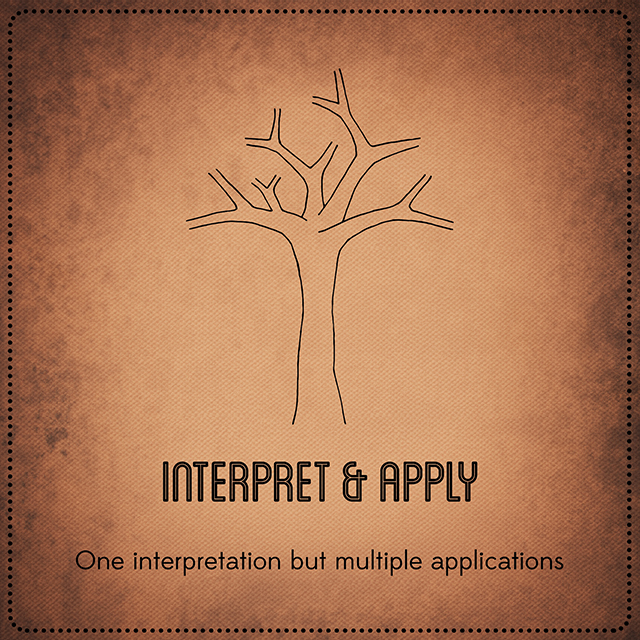 Interpretation is discovering the passage’s significance to everyone, everywhere, all the time – because it discovers the original authors meaning (what did the original author intend for his original audience in the original setting?). There is one meaning to the text.